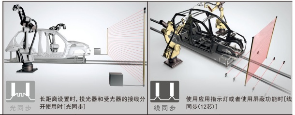 在安全光幕傳感器選購、施工時,從基本構(gòu)成到提高操作性的安全構(gòu)成,可根據(jù)客戶的需求來選擇合適的同步方式和電纜。